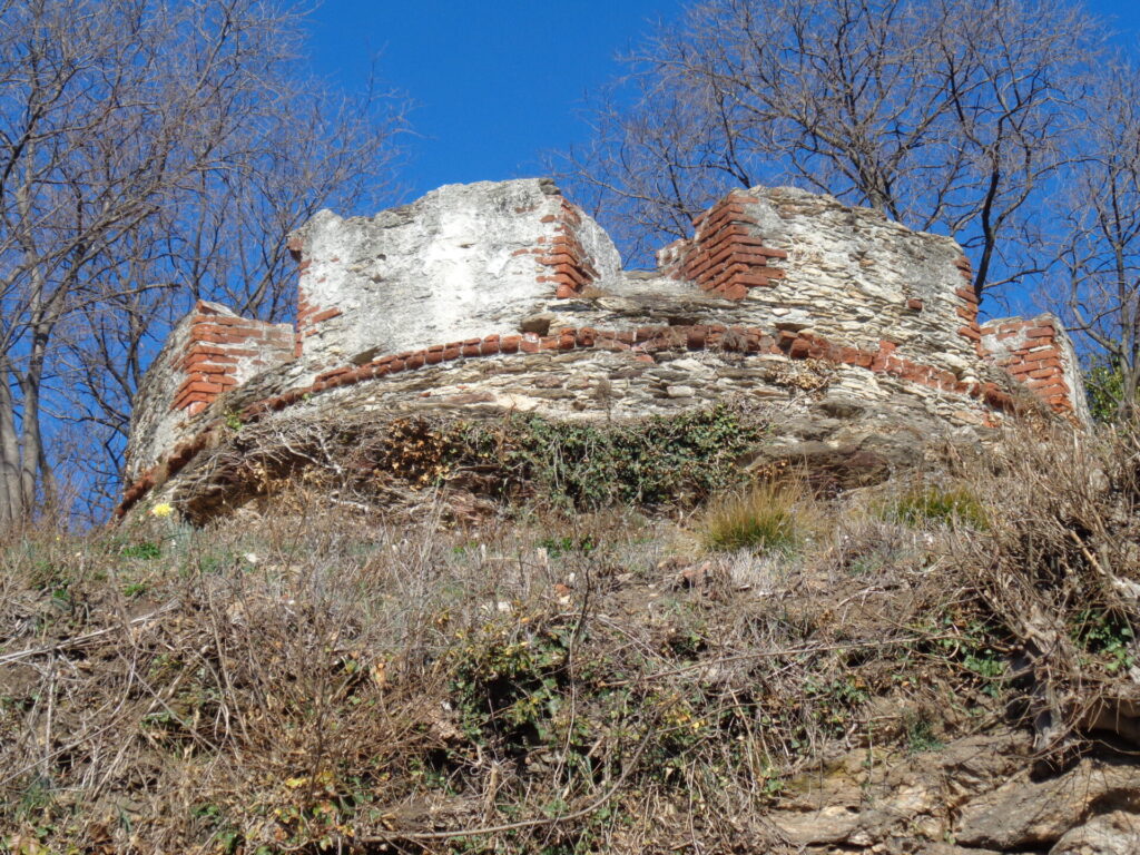 Partiamo da piazza S. Lorenzo con la parrocchiale del 700 e il campanile ottocentesco, saliamo i gradini della scala santa e ripreso l’asfalto, arrivati al bivio per S.Maurizio sulla sinistra vi perveniamo, anche se qui nulla resta del Presidio inferiore del Castello, distrutto nel 1960. Da qui una via in salita nel bosco porterebbe già alla vetta, ma torniamo indietro al bivio per ammirare, lungo il percorso principale, le opere incise nel legno di un artista locale (progetto Roccart). Poco sopra seguiamo una sterrata sulla destra che ci porta a Ca’d Pairet , con varie cavità abitate dall’uomo preistorico e poi in dieci minuti per asfalto e acciottolato arriviamo alla sommità della Rocca con il Pilone con la statua della Madonna in marmo di Carrara e ricordo dei caduti. Nel panoramico piazzale una rosa dei venti ci indica le varie cime circostanti, tra cui spicca il Monte Frioland (il Monviso è coperto). Ridiscesi di poco raggiungiamo con altra salitina la vicina Torre di Bramafam e la Big Bench del 2021. Dai resti di questa torre di guardia ci godiamo scorci sulla pianura dove si scorge l’abbazia di Santa Maria (del 1037), sede di un museo archeologico. Infine ridiscendiamo passando accanto a un pendio con gli alberelli piantati per i nuovi nati e ricollegandoci al bivio tra le due sommità, ma scendiamo per stradine asfaltate diverse che poi poco sopra alla Roccart , ci riportano sul tratto gia’percorso all’andata.