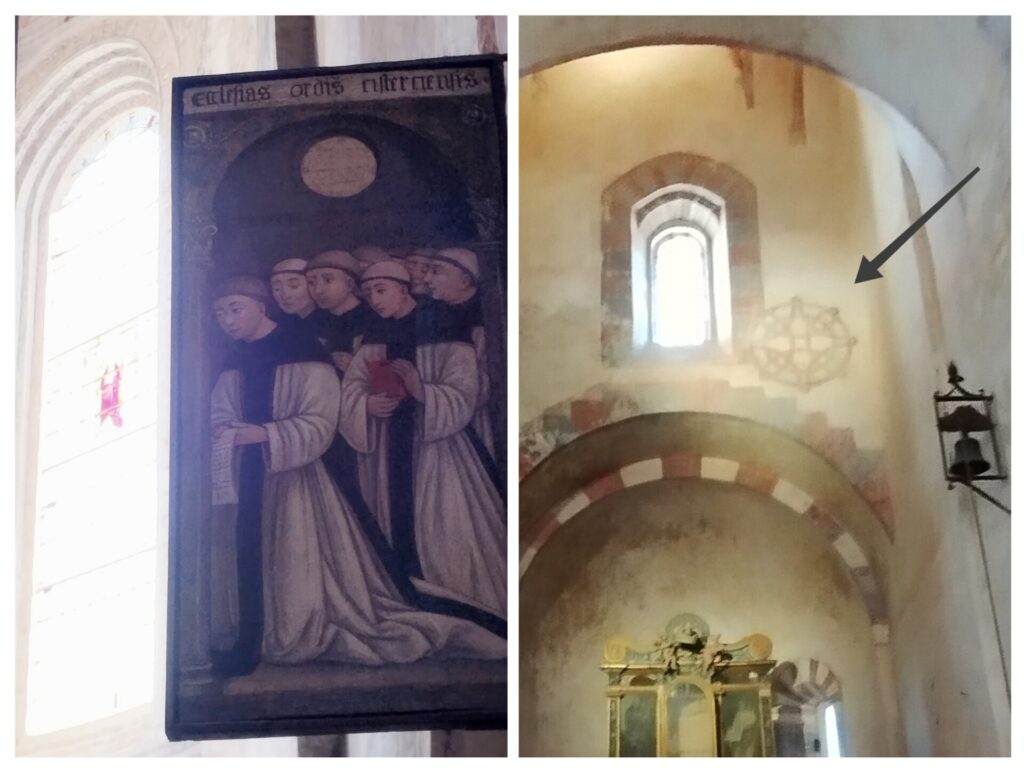 indicata dalla freccia la misteriosa Rosa di Staffarda, sorta di mandala medioevale
